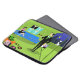 Deze Retro Urban Cartoon Couple Computer Bag toont de tekening van de cartoon van een elegant versierd penthouse appartement, waarbij een skyline van de stad over het hoofd wordt gezien. Het appartement heeft een groene vloer en een groene bakstenen muur. Op de muur zijn vier Klassieke Drukken van het Canvas van de Film Martini Verretched, ook beschikbaar bij de opslag Zazzle van StrangeLittleOnion (wenk, wenk!). Drie van de prints hebben een turkooisachtergrond en een is op een zwarte achtergrond. Onder het schilderwerk is een blauwe, moderne sofa uit de middelste eeuw. Een verfijnde, ravenharige schoonheid zit op de bank. Ze draagt een klassieke, kleine zwarte jurk met een roze roze lijf. Aan de andere kant van de kamer is er een suave, groot, donker, en knap man. Hij draagt een zwart pak, wit shirt en groen stropdas. Aan de ene kant heeft hij een vinylplaat, en aan de andere kant houdt hij een leuk album cover. Op de vloer is er een oranje tomaan met een groene en zwarte platenspeler. Tegen de ottoman is een andere albumomslag voorzien van een verslag dat uit de kant uitrolt. Er zijn ook drie kleurrijke vinylalbums verspreid over de vloer. Achter het man kunnen we door de glijdende glazen deuren op een groen balkon zien. Een witte kat met een roze halsband wordt op de rand van het balkon geperst. Naast de kat is er een adembenemende skyline compleet met skyscrapers en een gele halve maan. Als de andere helft zo leeft, teken me dan op!