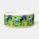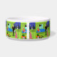 Deze Retro Urban-kerstparapet Bowl is voorzien van de repetitieve cartoon tekening van een elegant penthouse appartement dat allemaal gedecoreerd is voor de feestdagen met kleurrijke kerstlichten en een kitschy, roze, kerstboom, compleet met blauwgroen siervoorwerpen en een gele ster. Het appartement heeft een groene vloer en een groene bakstenen muur. Op de muur zijn vier Klassieke Drukken van het Canvas van de Film Martini Verretched, ook beschikbaar bij de opslag Zazzle van StrangeLittleOnion (wenk, wenk!). Drie van de prints hebben een turkooisachtergrond en een is op een zwarte achtergrond. Onder het schilderwerk is een blauwe, moderne sofa uit de middelste eeuw. Een verfijnde, ravenharige schoonheid zit op de bank. Ze draagt een levendige rode jurk en een kersthoed. Aan de ene kant houdt ze een bolletje mistletoe vast, gebonden met een rode boog. Aan de andere kant van de kamer is er een suave, groot, donker, en knap man. Hij draagt een zwart pak, wit shirt en rood stropdas. Aan de ene kant heeft hij een vinylplaat, en aan de andere kant houdt hij een leuk album cover. Op de vloer is er een oranje tomaan met een groene en zwarte platenspeler. Tegen de ottoman is een andere albumomslag voorzien van een verslag dat uit de kant uitrolt. Er zijn ook drie kleurrijke vinylalbums verspreid over de vloer. Achter het man zien we, door glijdende glazen deuren, sneeuw die valt op een groen balkon en de stad eronder. Een witte kat met een rode boog rond zijn nek is aan de rand van het balkon vastgeperst. Naast de kat is er een adembenemende skyline compleet met skyscrapers en een gele halve maan. Als de andere helft zo leeft, teken me dan op!