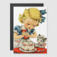 Little Girl and the Cake - Een retro verjaardagskaart uit de jaren 50 met een klein meisje dat een taart versiert met haar kleine poesje.