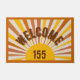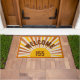 Deze gepersonaliseerde deurmat is voorzien van retro zon en zon met "welkom" tekst en aangepast huisnummer.
