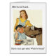 Een retro-huisvrouw glimlacht boeiend terwijl ze opkookt wat er lijkt op wat Beenie Weenies in een pot op de kachel. Haar man, gewoon thuis van het werk, leunt om een zweep te nemen. Op de voorkant van de kaart staat: "Nadat zijn schedel genezen was, vroeg Marvin nooit meer: "Wat' voor eten?" De kaart is leeg voor je eigen bericht.