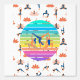 Een levendig retro ontwerp dat harmonie en beweging samenvoegt in één expressief stuk. In het midden voeren drie figuren gesynchroniseerde yogahoudingen uit in een grote horizontaal gestreepte cirkel gevuld met stralende regenboogkleuren - van turquoise en geel tot roze en paarse - die een dynamisch en vreugdevol gevoel geven. De zwarte achtergrond is versierd met herhalende lotusbloemen en yogafiguren, waardoor ritme en visuele diepte worden toegevoegd. Het is als een volledige artistieke scène waar herhaling een focale explosie van beweging en kleur ontmoet. De retro-esthetiek straalt door, maar blijft fris en gedurfd. Ideaal voor yogaliefhebbers of iedereen die zich aangetrokken voelt tot design die rust, balans en speelse energie uitstralen.