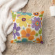 Retrobloemen Sinaasappel Lila Groen Kussen