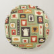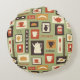 Retropatroon met keukengerei voor het ontbijt rond kussen