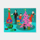 Deze Retroserie die de deur van de kerstboomdeur in orde brengt bevat elke vakantietraditie maar de fruitcake. Een cartoon familie uit 1960 is thuis in hun moderne woonkamer uit de midden van de eeuw. Er is een turquoise en een blauwgroen bakstenen muur en een rode, kegelvormige haard met een scherp vuur. Papa draagt een zwart pak en rood stropdas. Hij hangt met zorg groene kerstkousen op de modderschoorsteen. Naast vader is Junior op een oranje stoel. Wauw! Rustig, Junior. Hij reikt een sierbloem uit op een kitchige, roze kerstboom die al gedeckeerd is met blauwgroen siervoorwerpen en een gele ster. Aan de andere kant van de boom houdt mama een gesmolten cadeau vast. Hé, geen schudden toegestaan. Mam draagt een heldere rode jurk met witte sierstrip. Ze draagt ook een kersthoed. Onder de boom zit een gestroomlijnde zwarte kat met een rode boog. Op de vloer, is er een groene en zwarte verslagspeler omringd door kleurrijke vinylalbums. Je weet alleen dat het gezin samen met hun favoriete kerstcadeautjes zingt terwijl ze de zalen decoderen.