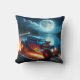 Een klassieke hot rod rijdt langs een kronkelende weg naast een sereen meer, vlammen schieten uit zijn banden onder een stralende volle maan, omringd door torenhoge bergen en weelderige bomen.