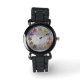 Edelstenen en strass in alle kleuren (dit zijn GEDRUKTE effecten) sieren dit leuke, flitsende, vrouwelijke horloge. Juwelen in plaats van nummers!