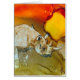 Rhino op Sunset is afkomstig van een origineel alcoholschilderij van Brenda Thour van een neushoorn met drie vogels die met een oranje of gele zonneachtergrond rijden. Copyright 2014. Alle rechten voorbehouden. Referentiefoto van Dr Thomas Trainer.