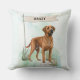 Add cozy charm to your home with this Rhodesian Ridgeback throw pillow featuring a watercolor design and customizable name flag. Ideal for breed lovers.