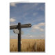 Kaart met foto van het baanbordbord op houten post in Oxfordshire, platteland met blauwe lucht, Engeland.