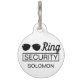 Dit schattige label van de bruiloft van een hond maakt het perfecte accessoire om je puppy in stijl te kleden op je trouwdag! Het bevat een mooie elegante illustratie van een zonnebril van een aviator met de titel "Ring Security", en het is gemakkelijk aanpasbaar met de naam van je huisdier en de trouwdatum door het bewerken van het veld sjabloon.