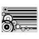 Eenvoudig zwart-wit grafisch ontwerp bestaande uit retrorringen en strepen. Het ontwerp is transparant zodat u kunt kiezen welke achtergrondkleur u wilt. Afbeelding beschikbaar op diverse giften en producten.