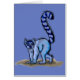 Schildering van een ringstaartmaki in tinten blauw. Binnenkant van de kaart heeft een sectie met feiten over het dier.