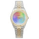 Dit elegante zilver- en goudtoned-horloge biedt de digitale kunstwerken Ripples van Sam Vacik in levendige kleuren in een grafisch ontwerp.