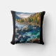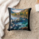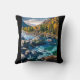 Kussen met een schilderachtig foto met boombedekte bergtoppen in herfstkleuren. Een levendige rivier stroomt rond een veelheid van rotsen. Een grote witte volle maan zweeft boven.