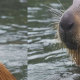 Op de foto zijn drie capibara's te zien die in de rivier zwemmen.