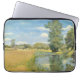 Rivier door een oogstlandschap, zomer laptop sleeve