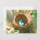 Afbeelding van drie blauwe roodroze roeitjes die nog niet zijn uitgebroed in een bruin houten twijgnest in een boom. Lichte schors van de kleurenboom op de achtergrond met een paar groene bladeren. Ik klom een boom in mijn achtertuin voor deze foto, fotografeerde de vogels een week later terwijl ze uitkwamen, en vloog vervolgens een week verder. Ik heb een aantal takken gesnoeid zodat ik een duidelijk schot in het nest had. Digitale foto
