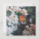 Olieverfschilderij in een realistische stijl, representerend een enkele rode roodroodroodroodroodroodvogel zittend op bloeiende kersenbloesemboomtakken. Een lentevreugde en de muziek van de natuur in kleuren.