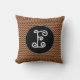 Dit kussen is voorzien van een roestachtig donkerbruin en lichter bruin golvend patroon. Het kenmerkt ook een de naam van de douanefist of brief van het familienaam initiaal in een interessante doopvont binnen een donkere cirkel. Het zou kunnen worden gegeven als aangepast cadeau aan iemand met een voornaam of een achternaam die begint met de letter van het initiaal.