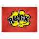 Comic-achtige rockillustratie met gele wolk en halftoondecoratie op rode achtergrond