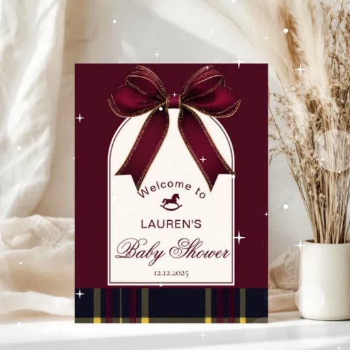 Rocking Horse Bourgondië Bow Plaid Luier Raffle Enclosure Kaart Overeenkomende items zijn beschikbaar.