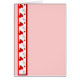 Een rood en wit lint tegen een retrorood aardbeipatroon van kunstwerk op een lege kunstkaart.