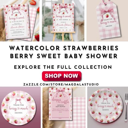 Watercolor Strawberries Berry Sweet Baby Shower Ontworpen door Magdaline Annie Martin Oming