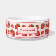 Rode aardbeien op roze met aangepaste huisdierenna voerbakje