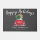 Rode auto met kerstboom deurmat