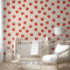 Kleine sappige rode appels in een krabbel krijt stijl op een beige behang. Perfect voor fruitige decors en vrolijke vibes.