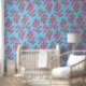 Rode Blauwe Bloem Botanische Bloemenlijn Kunstpatr Behang