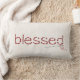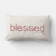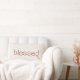 BLESSEN in de rode inspirerend gestikte tekst met naald en draad op lichtroomkleurige getextureerde achtergrond