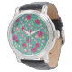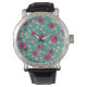 Rode bloemen op een groene achtergrond horloge