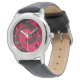 Rood convolutiepatroon. Romeinse getallen in staal Motif rouge avec lignes parallèles et circonvolution.