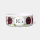 Keramische voerbak voor uw kat of hond met daarop een afbeelding van een donkerrode Dahlia-bloem in een herhalend patroon en de naam van uw huisdier. Personaliseer de bak door de naam van het huisdier te vervangen door uw eigen naam. Een mooi, bloemig ontwerp! Kies de gewenste maat voor uw huisdierbak.