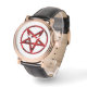 Rode, omgekeerde, gestructureerde pentagram in cirkel, op witte achtergrond. Occult symbool. 666
