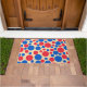 Rode en blauwe Stippen op Tan Deurmat