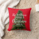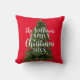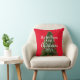 Voeg je familienaam en jaar toe aan dit feestelijke rode kerstboomkussen. Het is dubbelzijdig en aan de andere kant staat een andere kerstboom. Vrolijk boompje!
