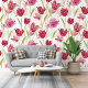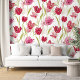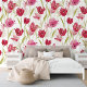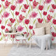 Rode en roze tulpen Waterverf bloemmotief Behang