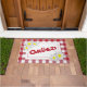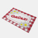Een rode en witte Gingham patroon deurmat met edelweiss. Personaliseer het met uw eigen groet. Ontworpen voor Zwitserse mensen die in de VS wonen (of ergens anders zolang het wereldwijd wordt verzonden ) . © ArianeC Illustrations-All rights reserved