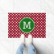 Voeg een vakantie-aanraking toe aan je voorste veranda met deze schattige rode en witte poka stip met een groene en witte monogram doormat.