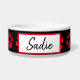 Voeg de naam van je hond toe aan deze schattige rode en zwarte pow print hondenkom.