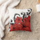 Rood, zwart en wit ontwerp van bloemen en rollen.