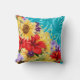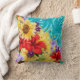 Rode, gele, paarse bloemen op Aqua Kussen