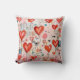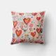 Een kussen met een leuk gemengd mediastijl patroon. Grote rode harten en verschillende willekeurige vormen verspreid over het maken van een heerlijk schattig patroon.