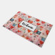 Een welkome deurmat met een leuk patroon in gemengde mediastijl. Grote rode harten en verschillende willekeurige vormen verspreid over het maken van een heerlijk schattig patroon.