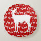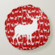 Dit hertenontwerp rond kussen is ideaal voor iedereen die houdt van herten, dieren, wilde dieren en leuke design! Beschikt over verschillende kleine rustieke witte herten silhouetten op een achtergrond van rood met een groot wit silhouet doe op de voorkant, bok op de rug. Dit hertenkussen is perfect voor de woonkamer, het hol, de familiekamer, de familiecabine op het meer, en natuurlijk maakt het een groot geschenk.