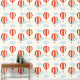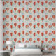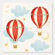 Schattige kinderkamerpatroon met rood gestreepte heteluchtballonnen, zacht blauwe wolken en sterren.