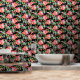 Rode Hibiscus Eucalyptus groen op zwart Behang